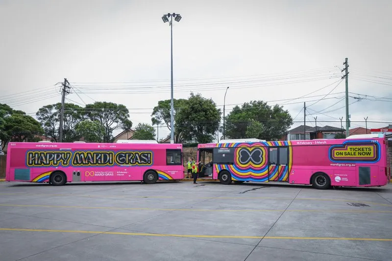 Two eye-catching pink buses will start driving passengers across Sydney in celebration of the 46th Sydney Gay and Lesbian Mardi Gras Festival 2024.